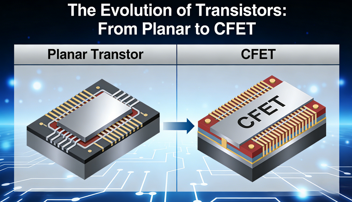 Сам транзістар перажывае поўную архітэктурную рэвалюцыю.Ад планарнага MOSFET да FinFET, ад наналіста GAA да кладкі CFET, кожны крок уяўляе сабой пераход ад сціскання да перабудова транзістара ў трох вымярэннях.Гэта не проста паступовае паляпшэнне — гэта поўнае перавызначэнне таго, як чыпы забяспечваюць прадукцыйнасць.